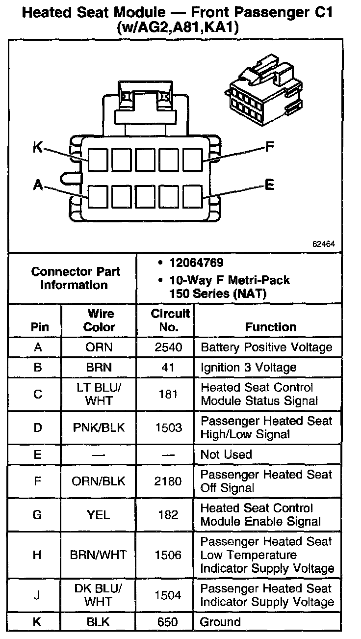 Heated Seat Module - Front Passenger C1 (W/AG2,A81,KA1):