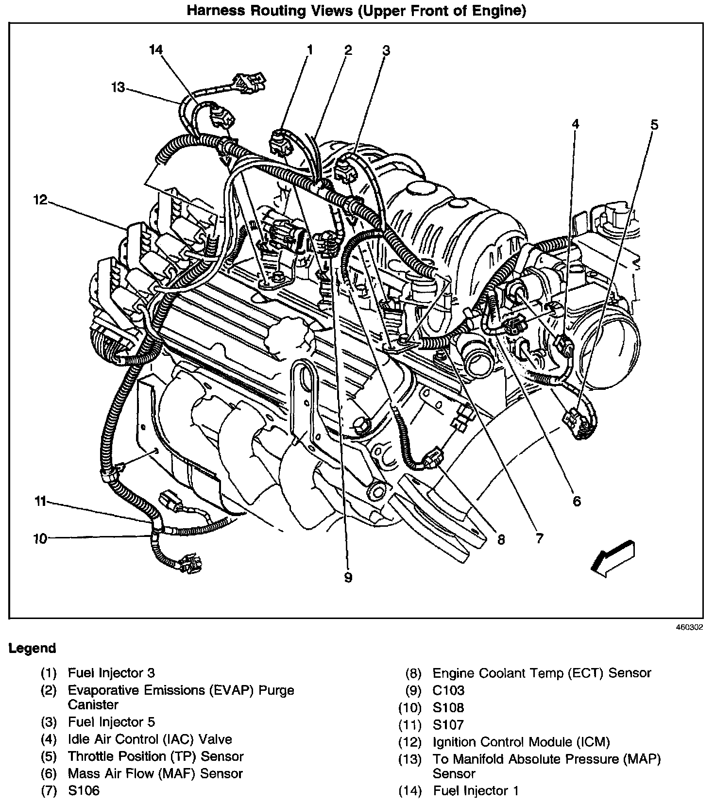 Harness Routing Views (Upper Front of Engine):
