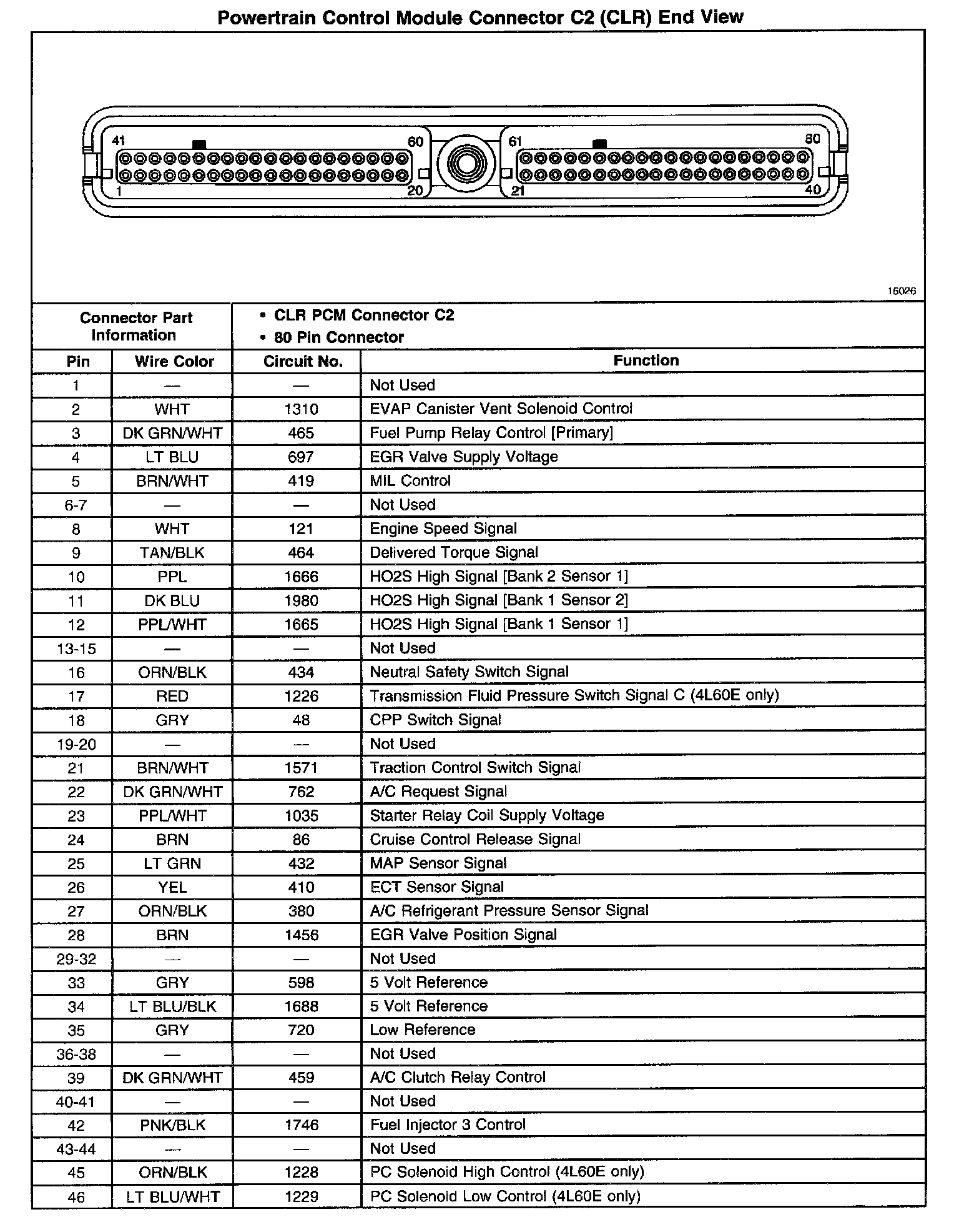 Powertrain Control Module Connector C2 (CLR) End View (Part 2 Of 2):