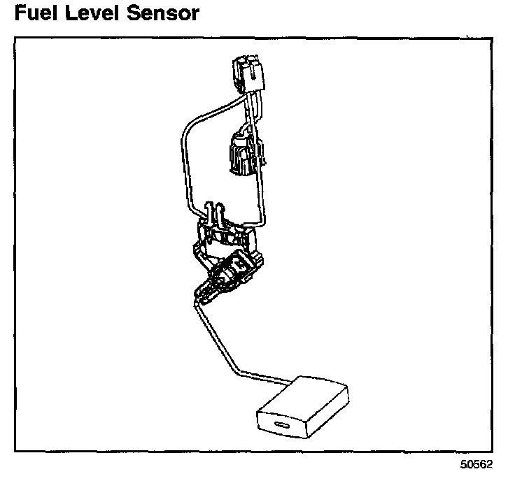 The fuel level sensor consists of a float, a wire float arm, and a ceramic resistor card. The position of the float arm indicates the fuel level. The fuel level sensor contains a variable resistor which changes resistance in correspondence with the amount of fuel in the fuel tank. The Powertrain Control Module (PCM) sends the fuel level information via the class 2 circuit to the instrument panel (IP) cluster. This information is used for the IP fuel gauge and the low fuel warning indicator, if applicable. The PCM also monitors the fuel level input for various diagnostics.