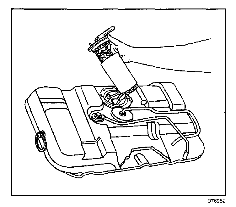 IMPORTANT: The fuel pump strainer must be in a horizontal position when the fuel sender is installed in the tank. When installing the fuel sender assembly, assure that the fuel pump strainer does not block full travel of the float arm.