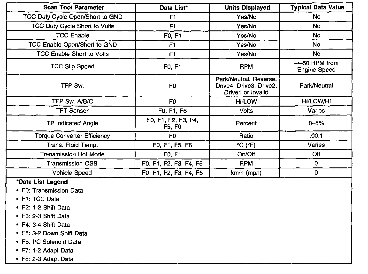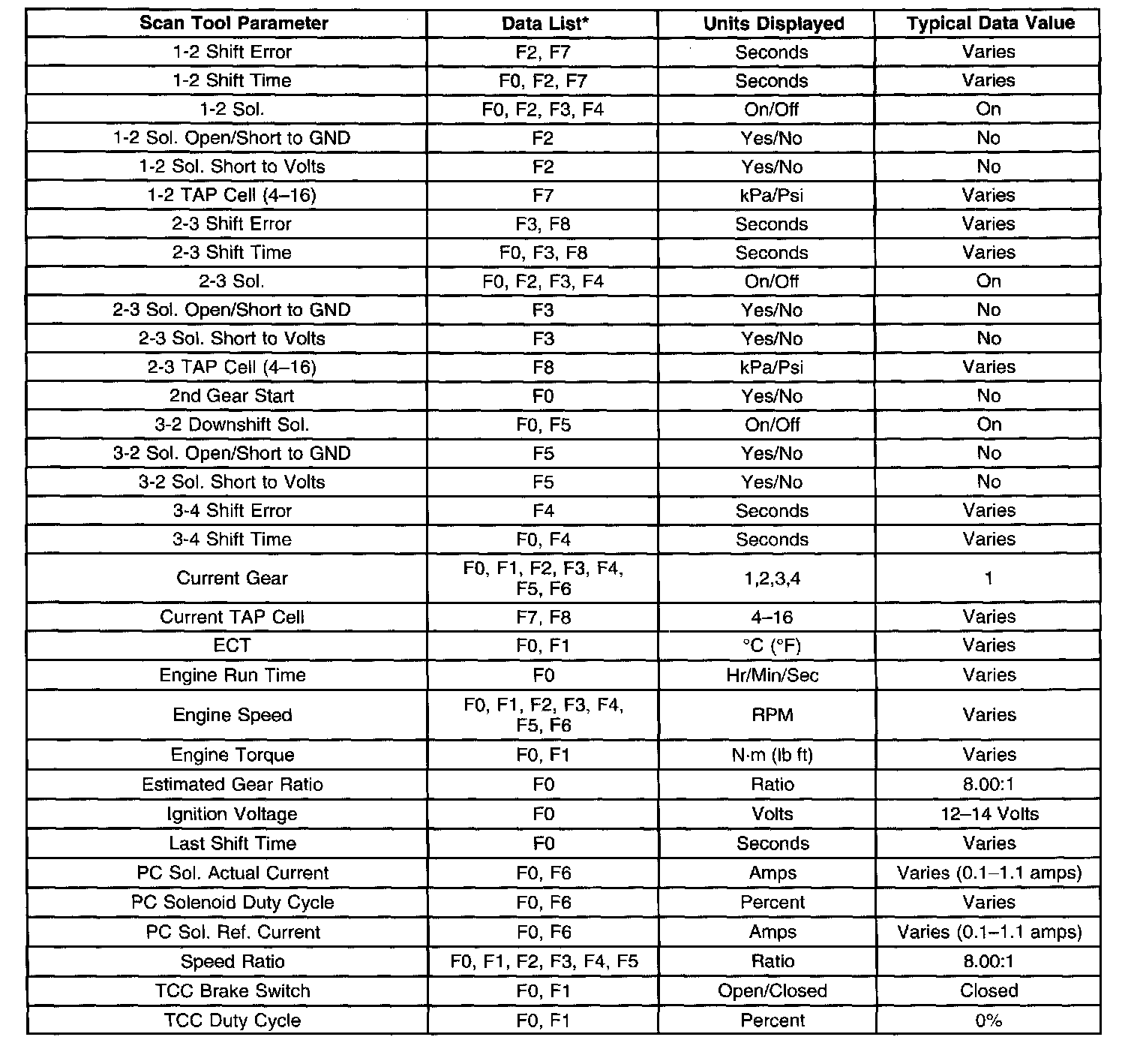 Transmission Scan Tool Data List (3.8 L)Use the scan tool data list under the following conditions:
