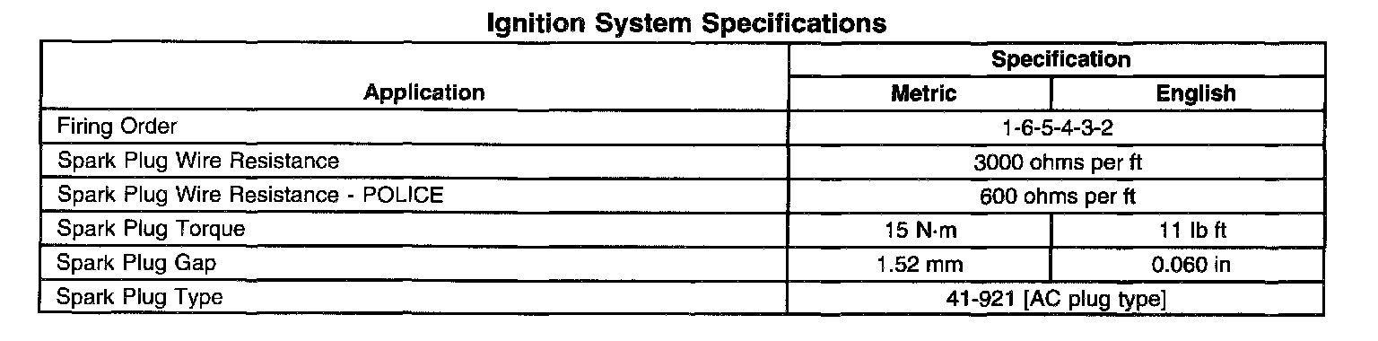 Ignition System Specifications:
