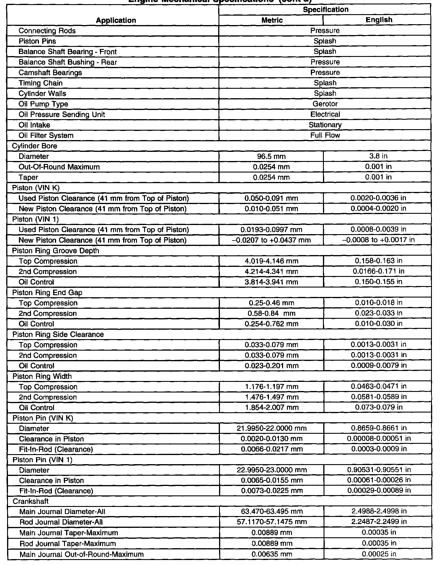 Engine Mechanical Specifications-Unit Repair