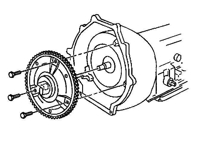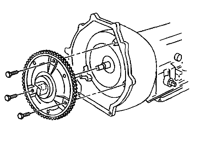 ^ Tighten the torque converter bolts to 63 Nm (47 ft. lbs.).