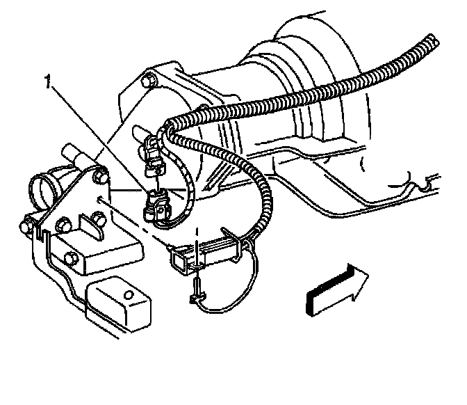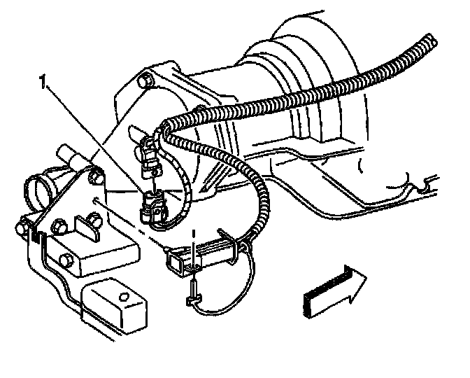 11. Install the wiring harness clamp bolt (1) attaching the clamp to the transmission.
