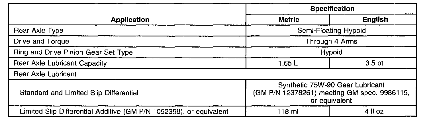 Rear Axle Specifications