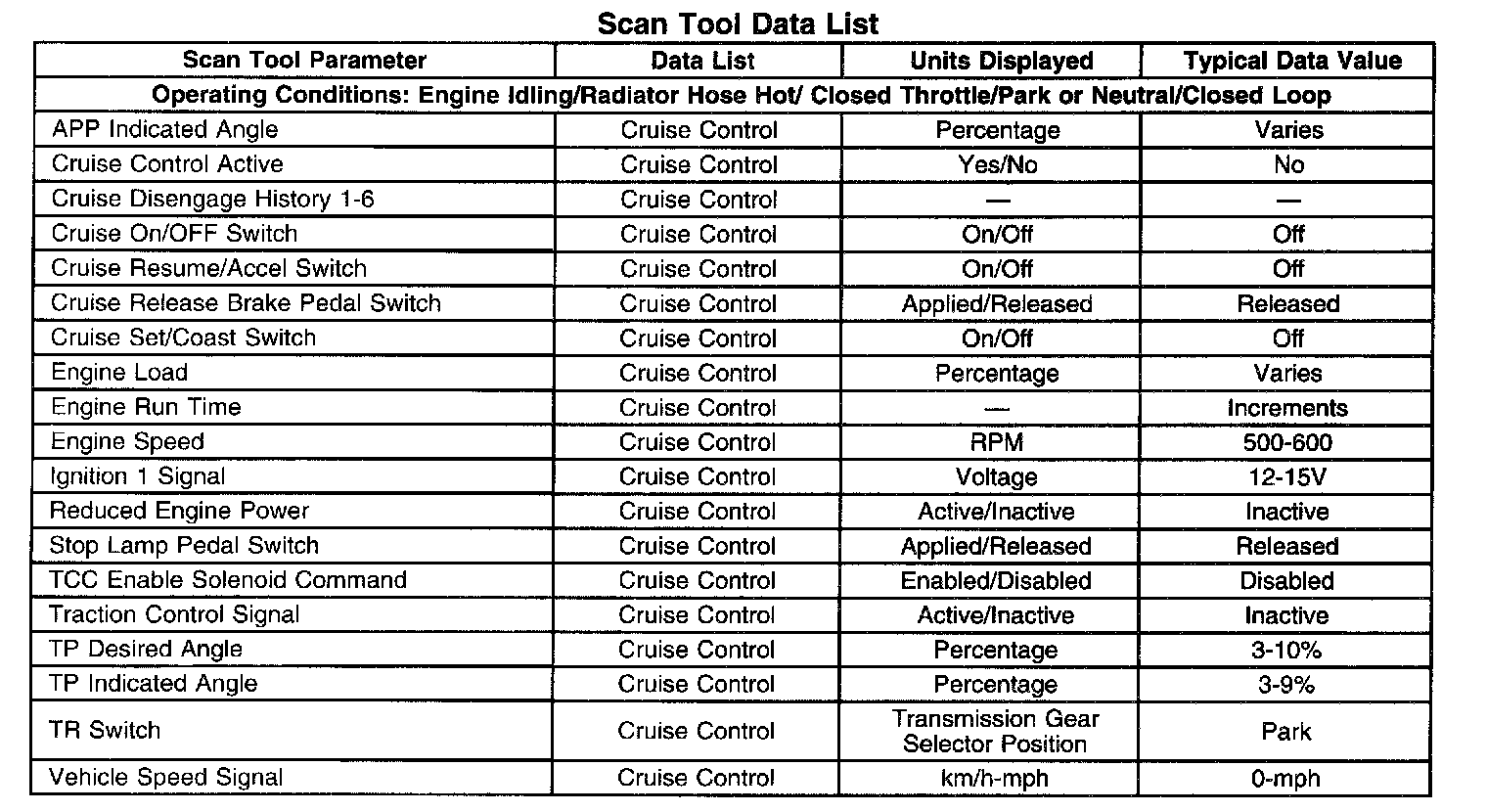 Scan Tool Data List:
