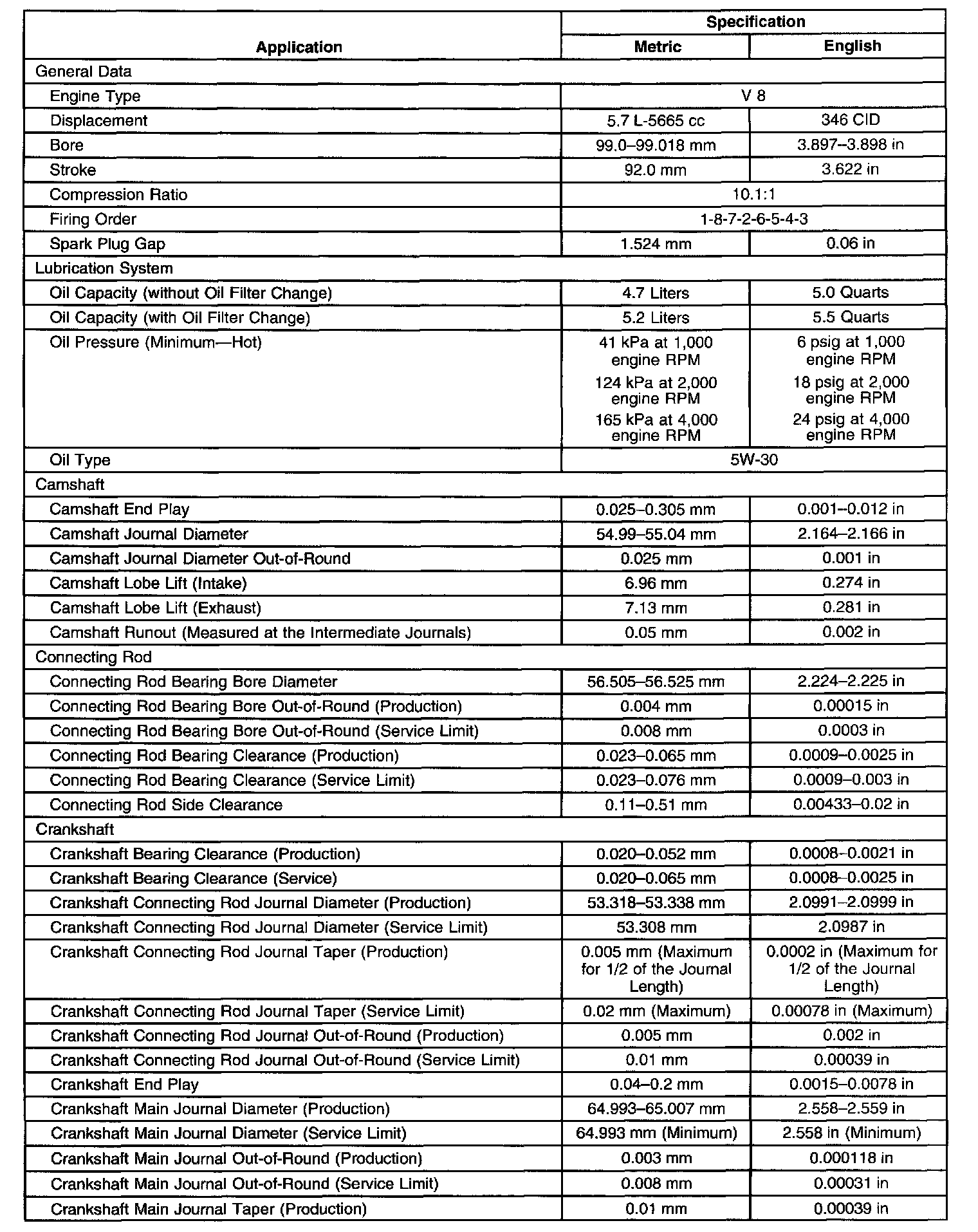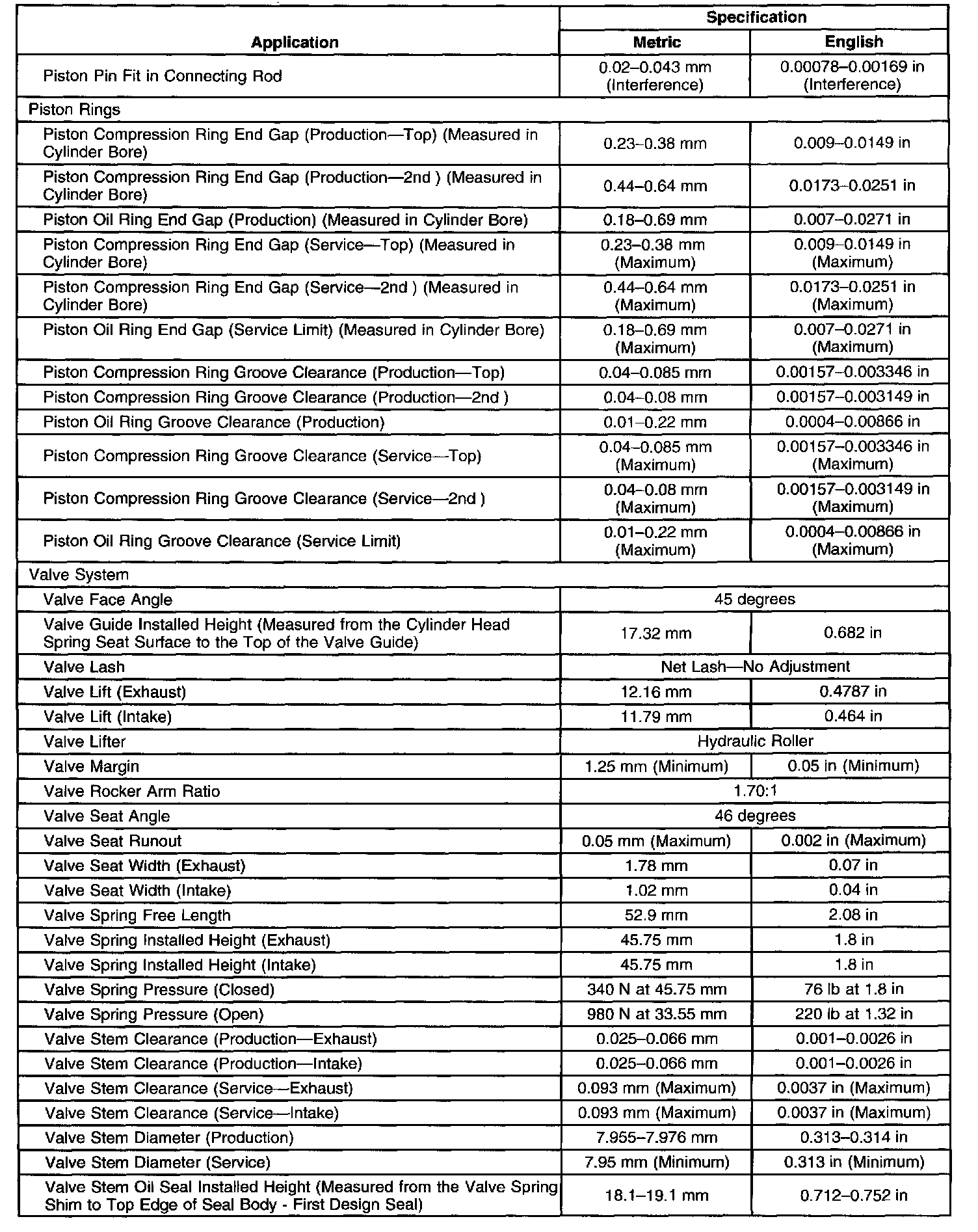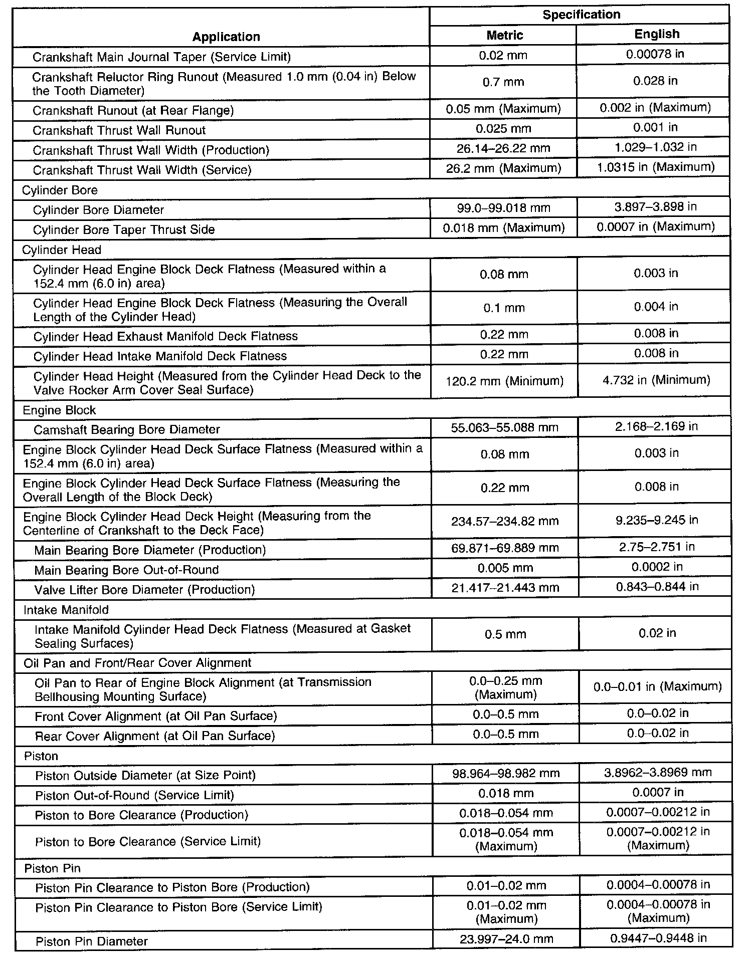 Engine Mechanical Specifications-Unit Repair