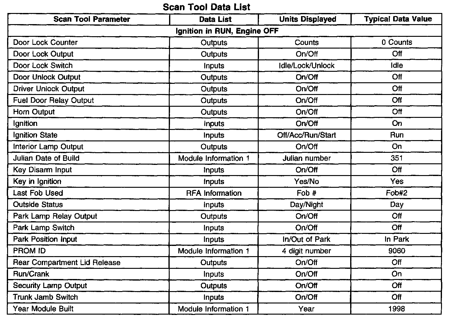 Scan Tool Data List