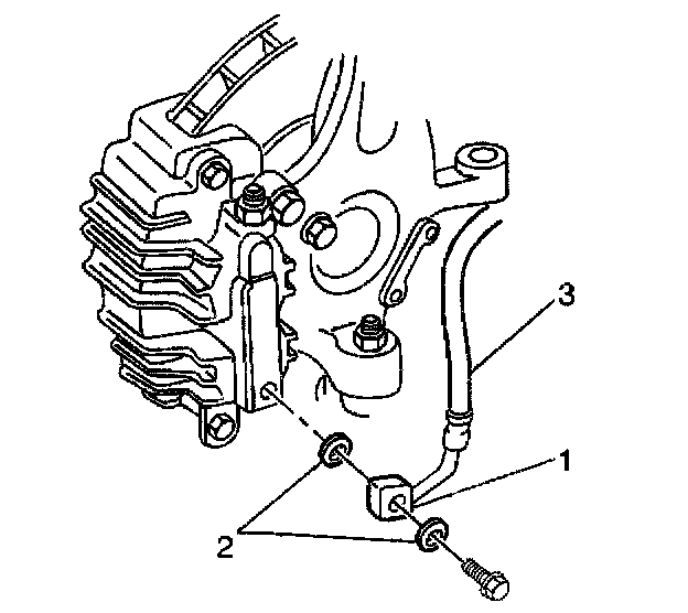 4. Install new gaskets (2) and the brake hose bolt to the brake hose inlet fitting.