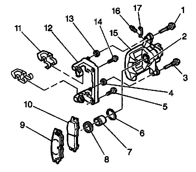 8. Remove the caliper (15) from the caliper bracket (12).