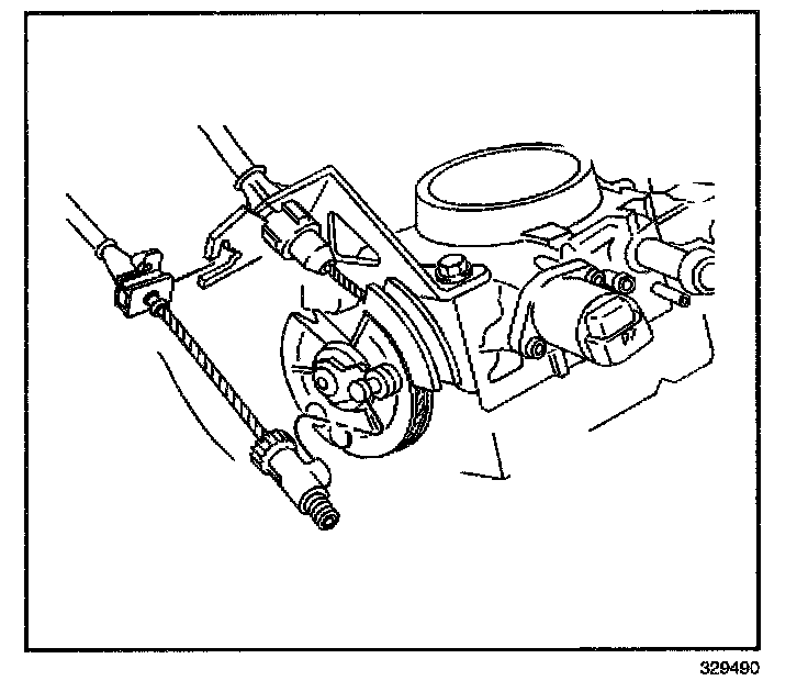 5. Remove the cruise control cable from the throttle body bracket.