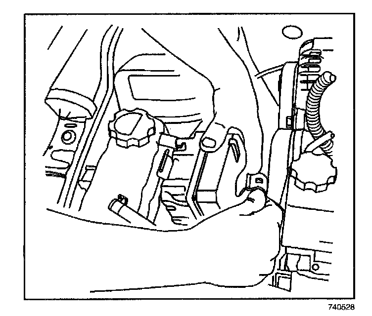 12. Reposition the surge tank to access the bolts to the cruise control mounting bracket.