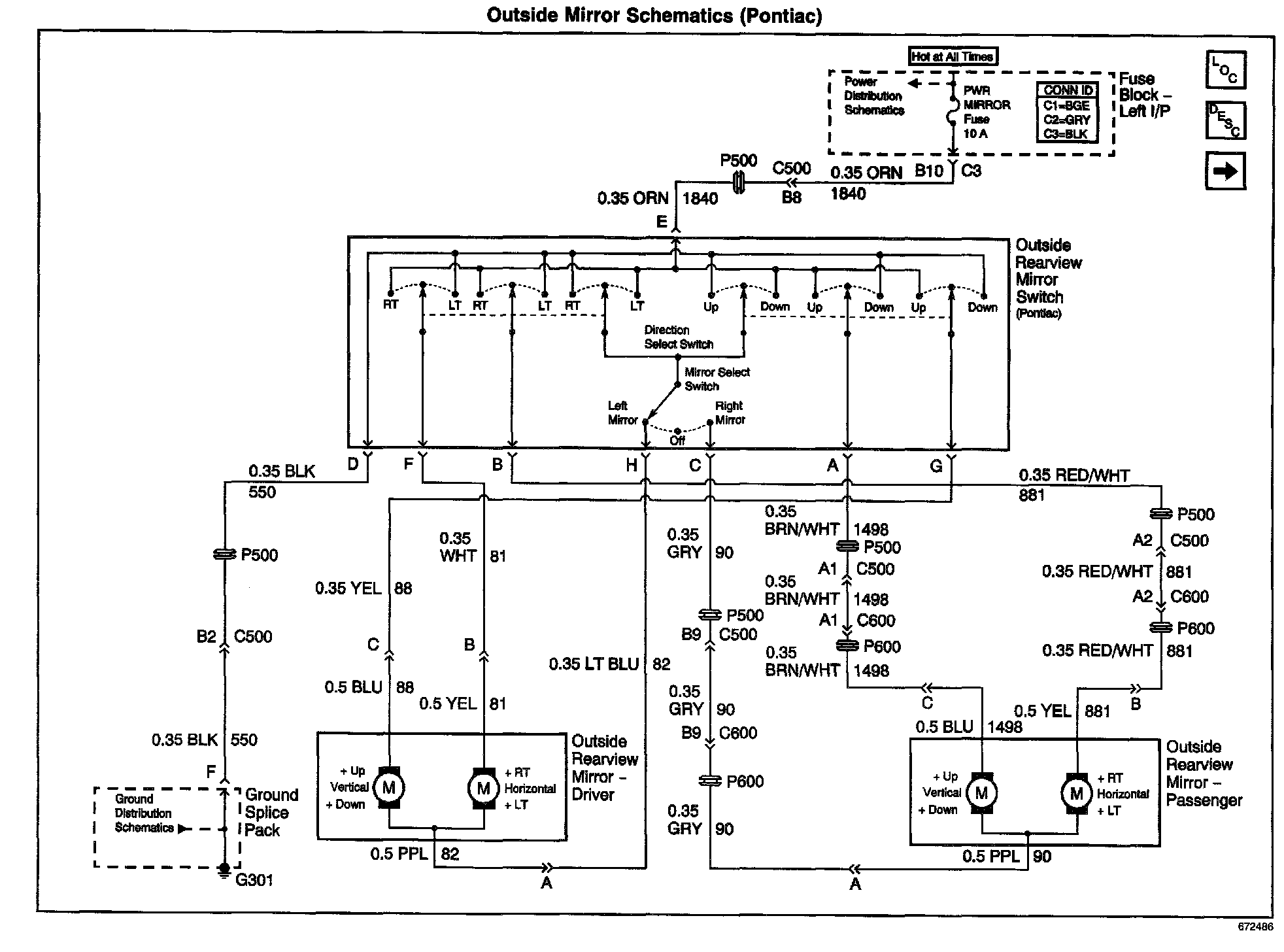 Outside Mirror Schematics: Pontiac: