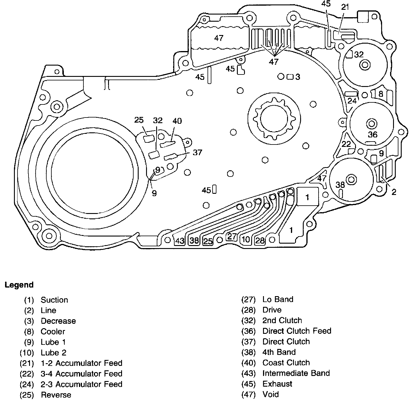 Control Valve Body Fluid Passages (Oil Pump Base Side)