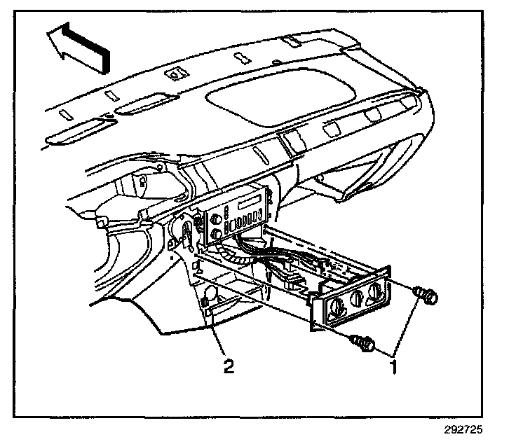 3. Remove the control assembly away from the instrument panel (2).