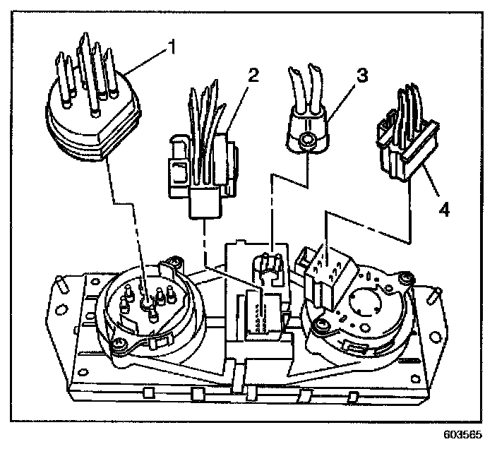 6. Disconnect the blower motor switch electrical connector (4) from the control assembly.