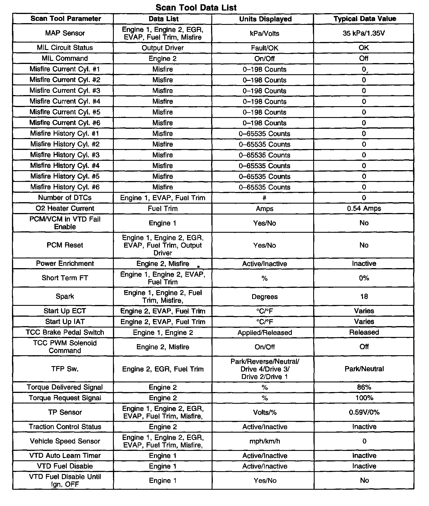 For scan tool parameter definitions, refer to Scan Tool Data Definitions. Scan Tool Data, Normal Values and Definitions