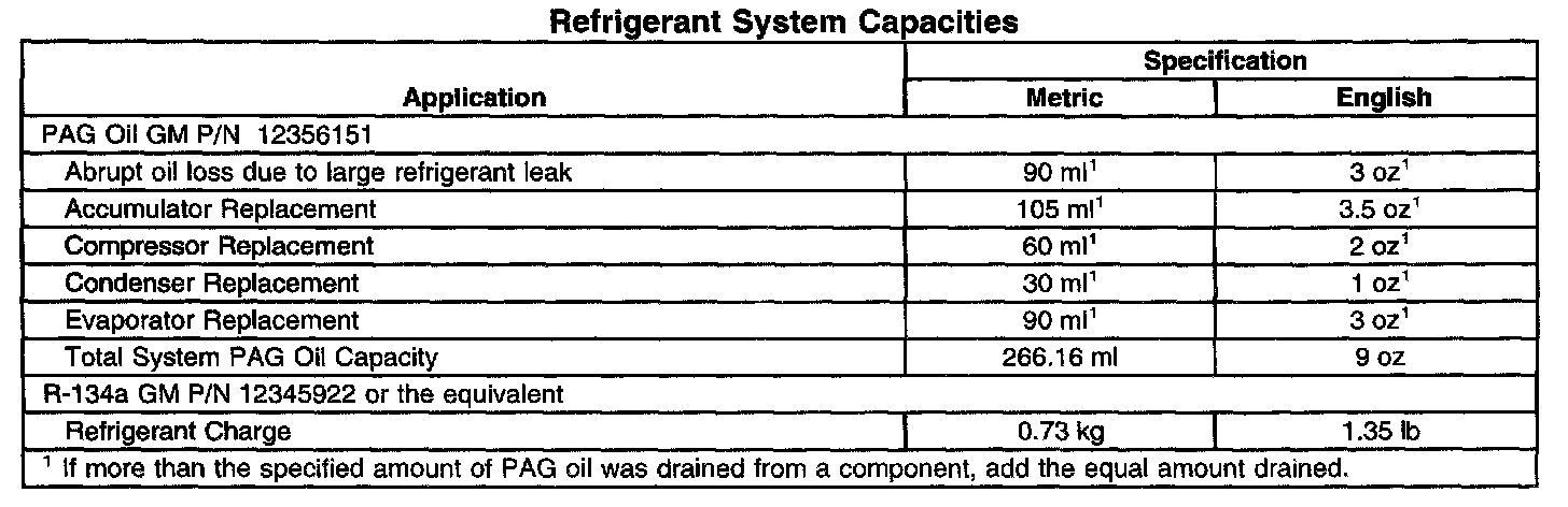 Refrigerant System Capacities: