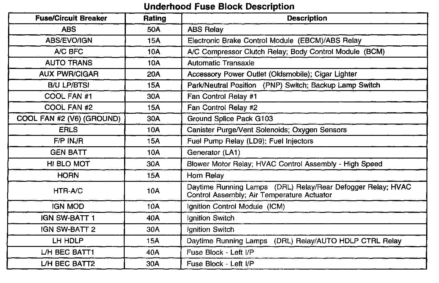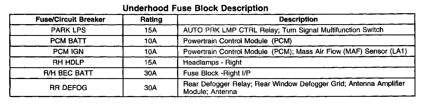Underhood Fuse Block Identification