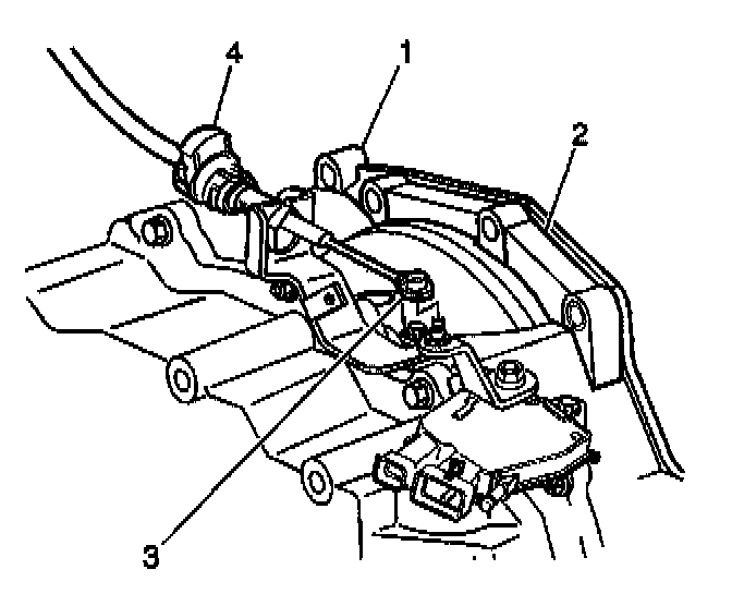2. Remove the cable (4) at the transmission (2) shift control assembly (3).