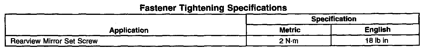 Fastener Tightening Specifications: