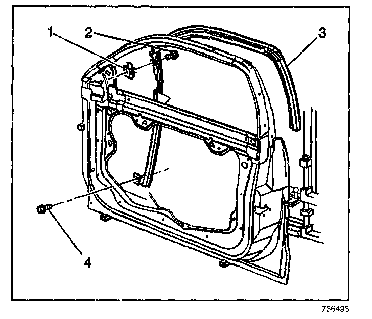1. Install the run channel weather-strip (3) to the front door window.