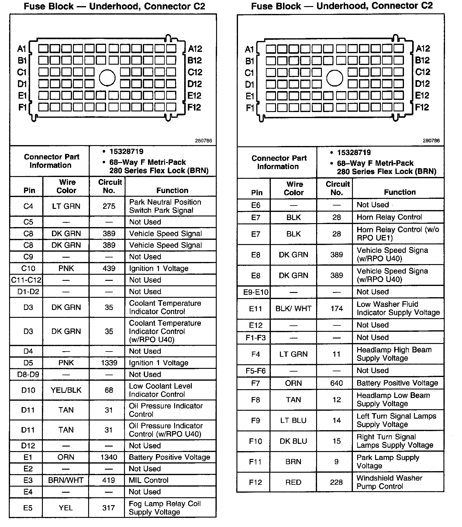 Fuse Block-Underhood, Connector C2 (Part 1 of 2):