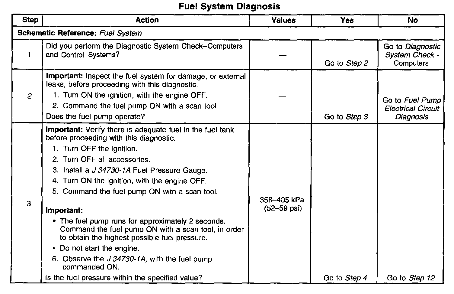 2. This step verifies that the fuel pump is operating.