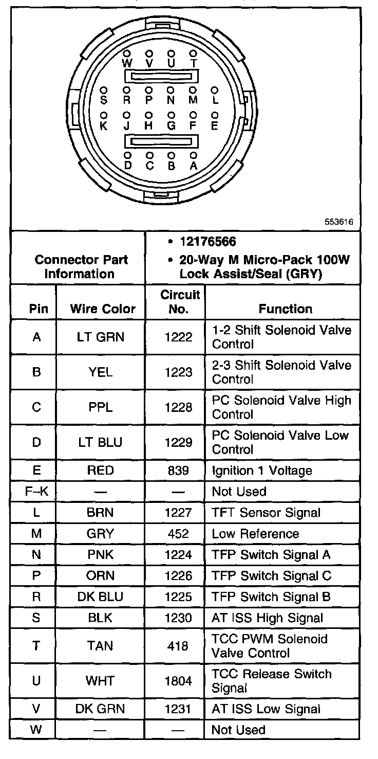 A/T Inline Harness 20-Way Connector, Transmission Side