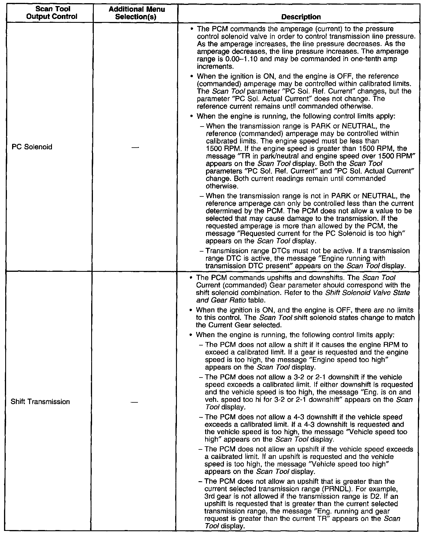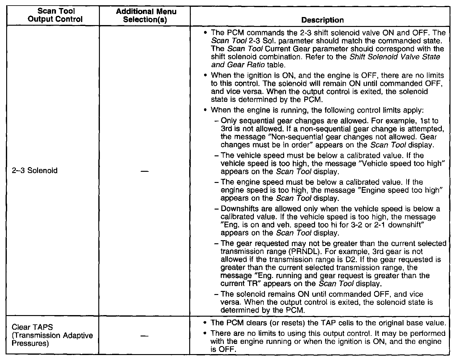 Scan Tool Output Controls