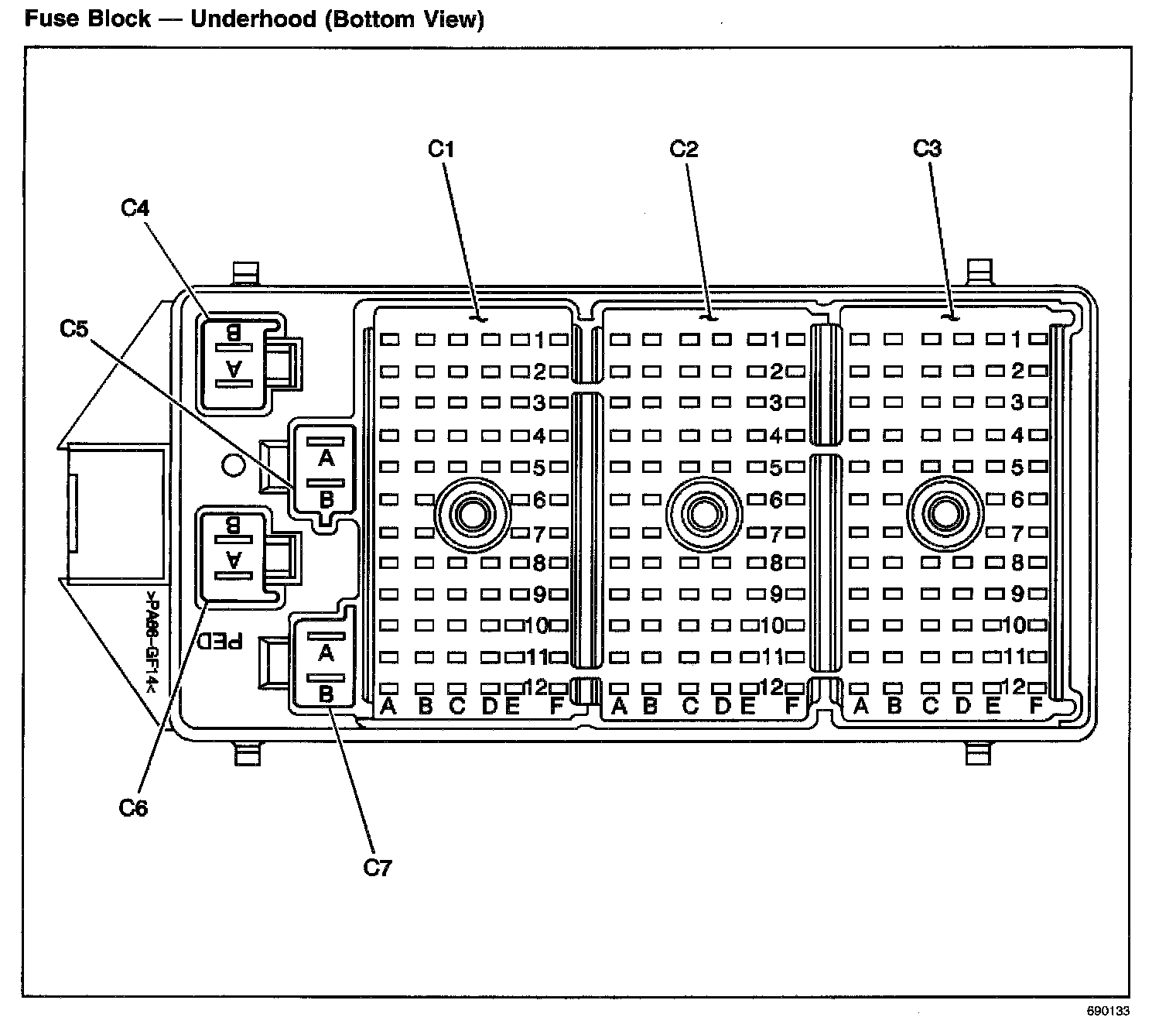 Fuse Block - Underhood (Bottom View):