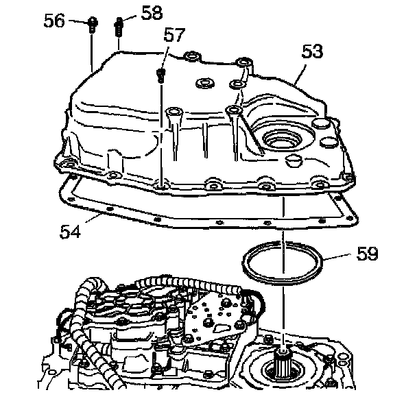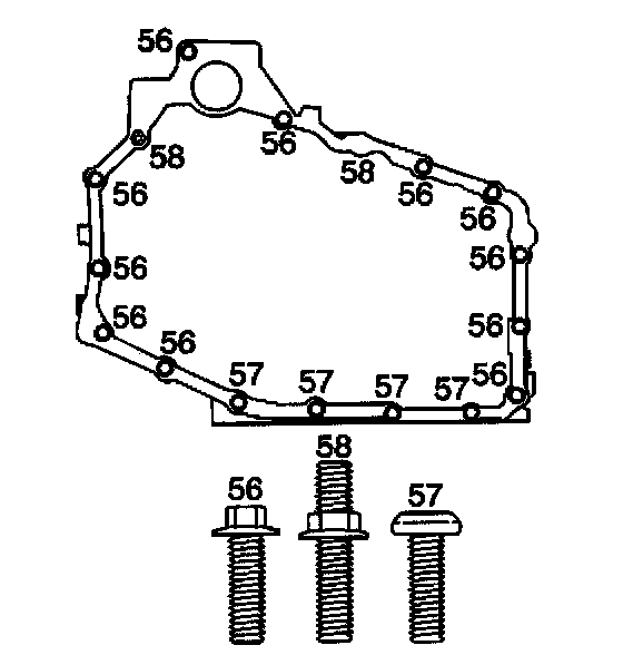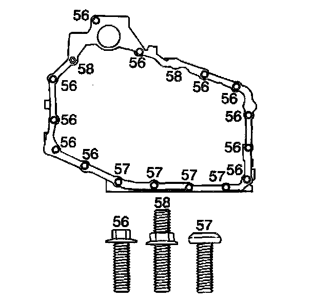^ Tighten the case side cover bolts (56-58) to 25 Nm (18 ft. lbs.).