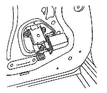 6. Position the rear door window regulator motor through the access opening to allow removal of the rear door window regulator motor to regulator screws.