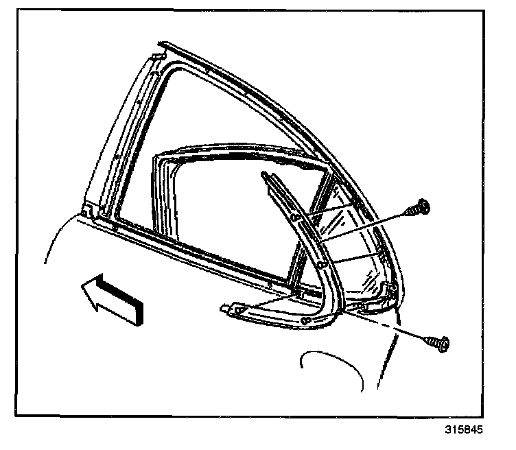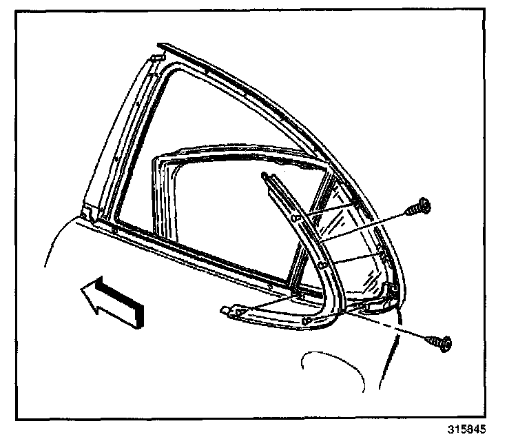 3. Remove the screws from the rear door stationary window molding.