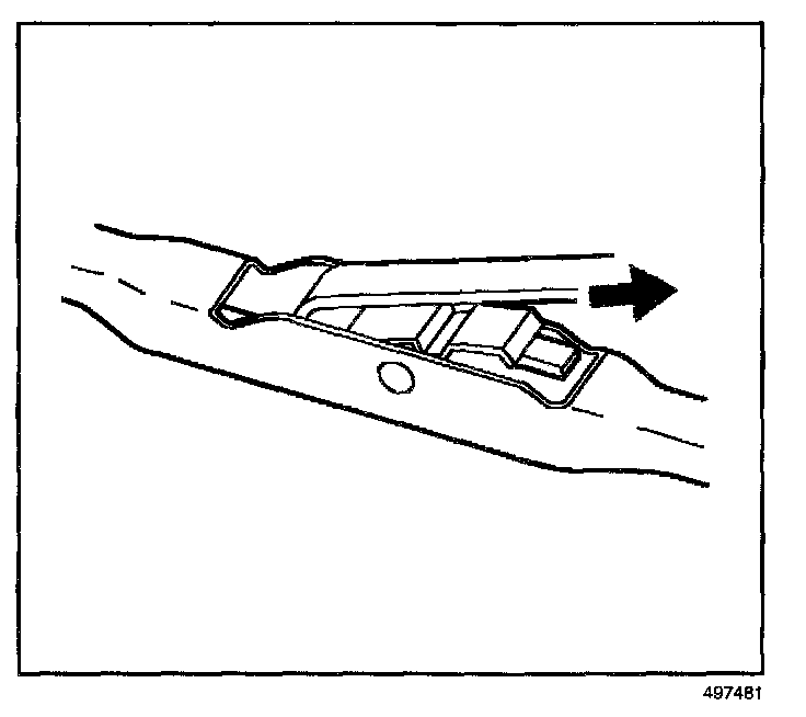 4. Push in the button of the wiper blade clip and remove the wiper blade from the inside radius of the wiper arm.