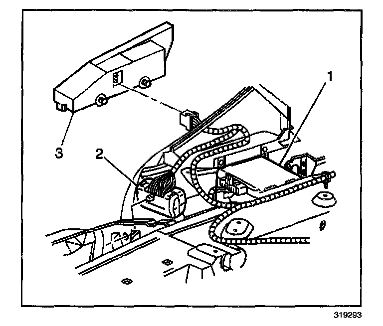 3. Disconnect the electrical connector (2) of the remote control door lock receiver (1).