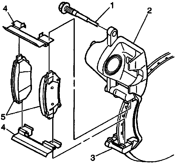 3. Install the pads (5) to the caliper anchor bracket (3).