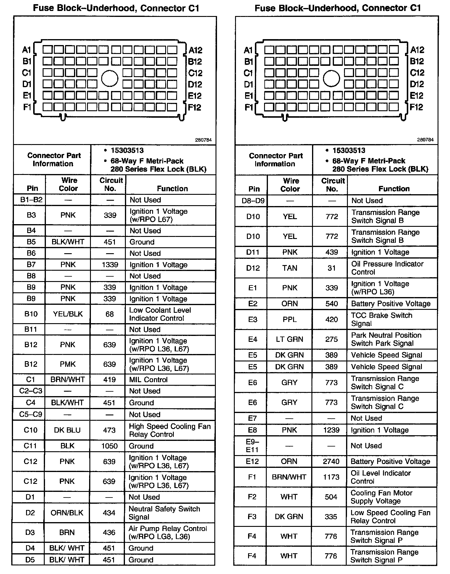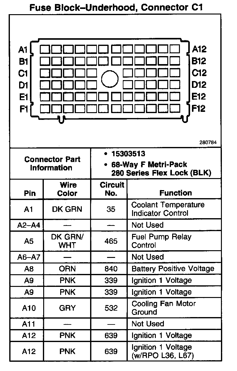 Fuse Block-Underhood, Connector C1 (Part 3 of 3):