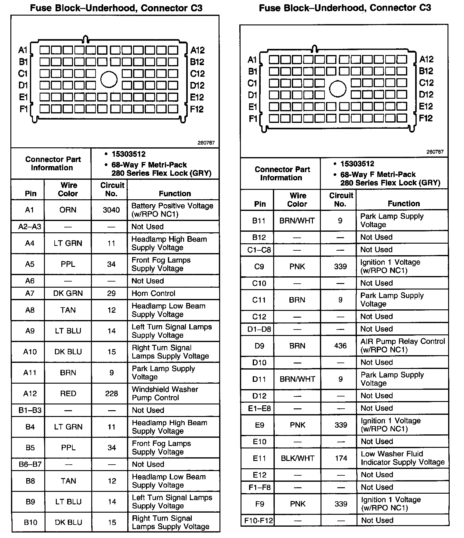 Fuse Block-Underhood, Connector C3: