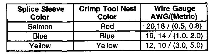 5. Select the proper splice sleeve (2) and the required crimp nest tool, refer to the Crimp and Seal Splice Table.