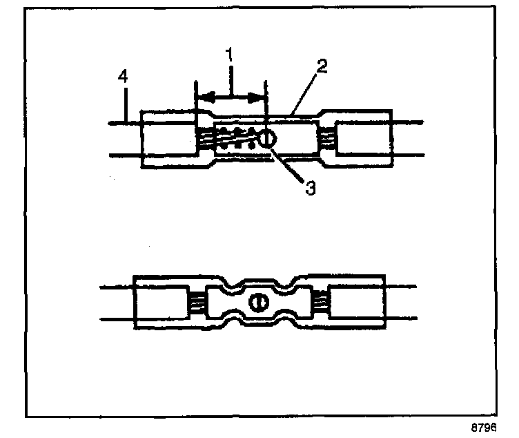 9. Insert the wires into the splice sleeve until the wire hits the barrel stop. The splice sleeve has a stop in the middle of the barrel in order to prevent the wire from passing through the splice (3).