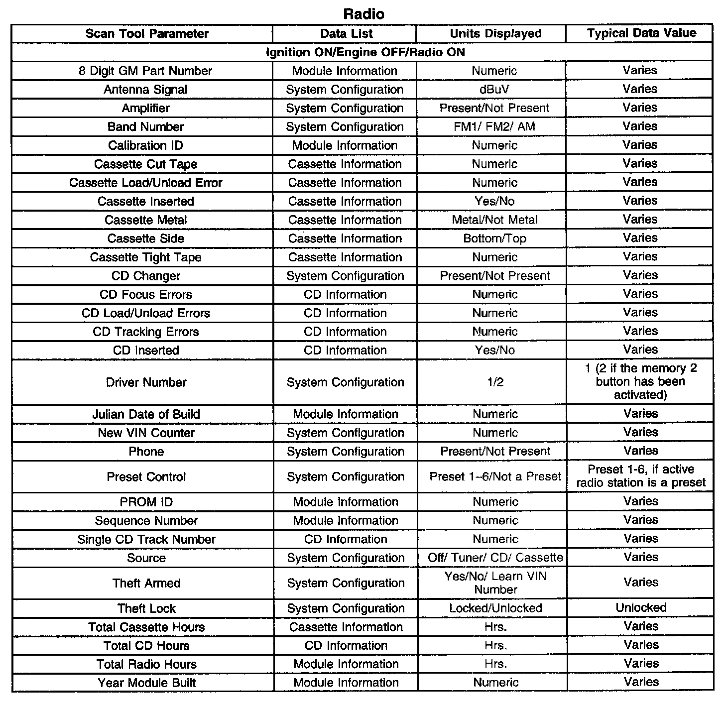 Scan Tool Data List