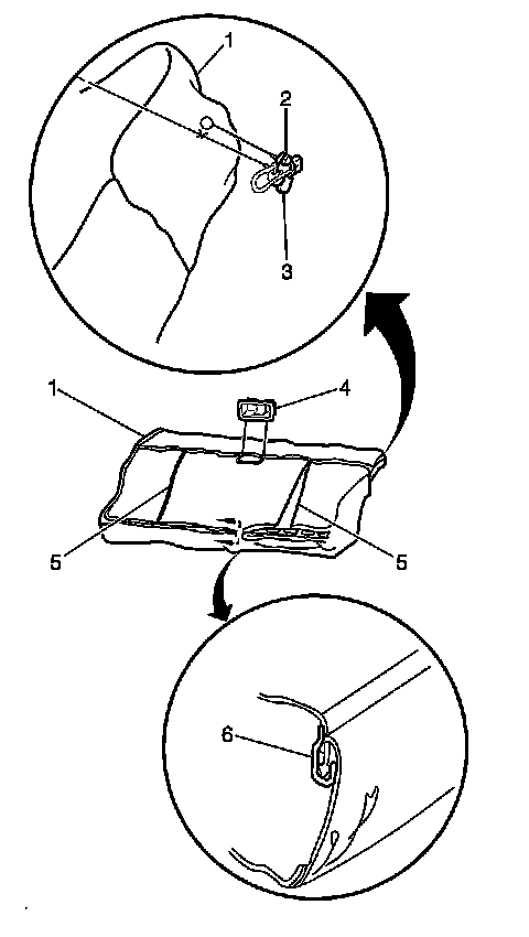 5. Unfasten the J-hook retainer (6) at the bottom of the seat back.