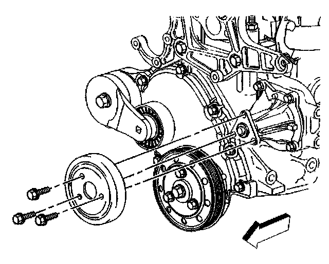 4. Remove the coolant pump pulley bolts.