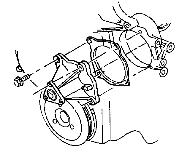 1. Using a new gasket, install the coolant pump and the attaching bolts. Coat the bolt threads with pipe sealant GM P/N 12346004, or equivalent.