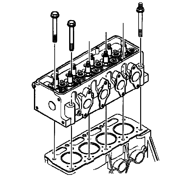 3. Carefully guide the cylinder head into place over the dowel pins. This operation may require an assistant.