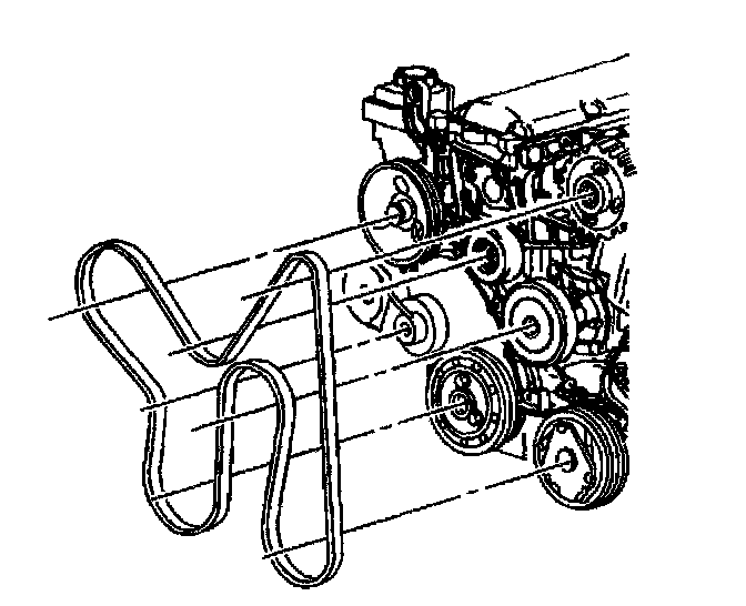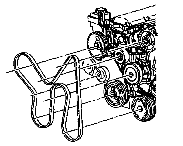 Important: Make sure that the drive belt is aligned into the proper grooves of the accessory drive belt pulleys.