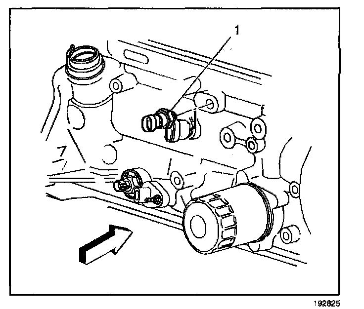 3. Remove the engine oil pressure sensor (1) using J 35749.